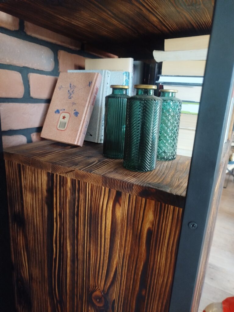 Tady nastupuje naše nejoblíbenější technika – opalování a kartáčování dřeva. Je to proces, při kterém oheň zvýrazní to nejkrásnější, co v dřevě je: jeho hlubokou kresbu, léta a suky.